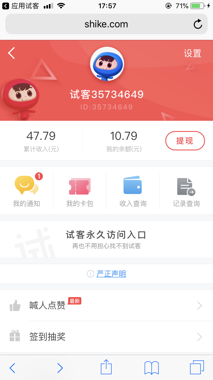 应用试客-人人都喜爱的应用社区,玩应用有现金奖励,单价1-4元,8元即可提现(秒到帐)。发现好玩有趣的APP,试玩应用更有现金奖励,赶快来试玩吧。仅限苹果iOS 9.0以上系统。