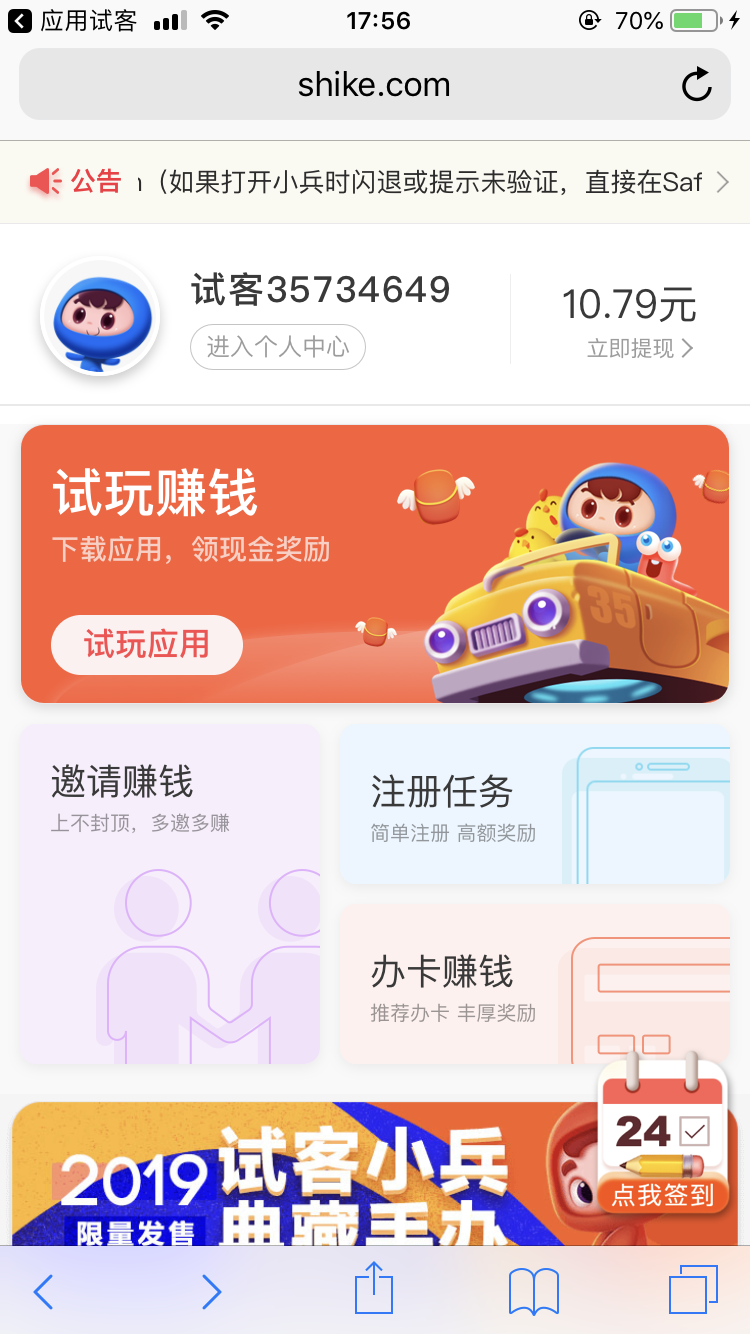 试客小兵每试玩列表中的一个应用即可获得现金奖励3元、2元不等。目前“试玩”奖励仅针对iOS(苹果)用户开放,试客小兵下载苹果版本且不支持越狱设备。安卓、iOS(苹果)、越狱用户都可以通过邀请iOS(苹果)好友试玩应用获得丰厚邀请奖励!现金奖励可通过支付宝/微信轻松提现,小伙伴们反馈玩试客小兵都赚High了。