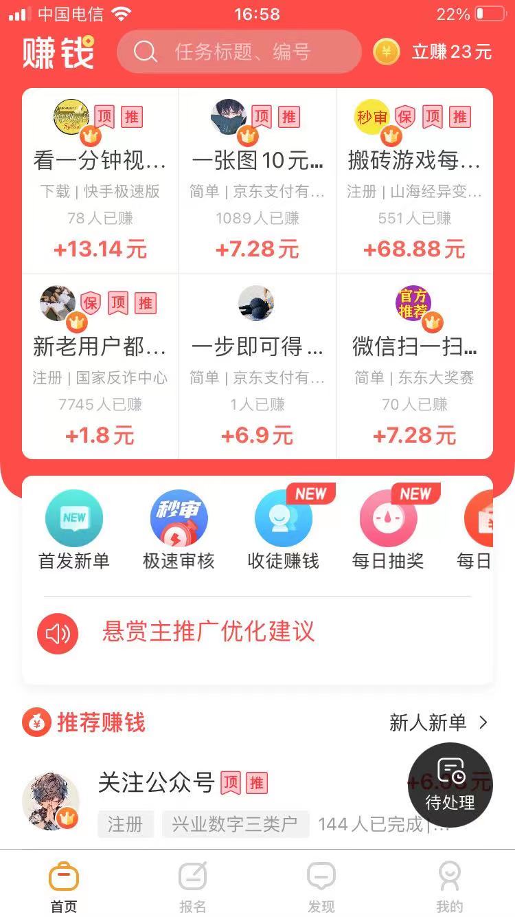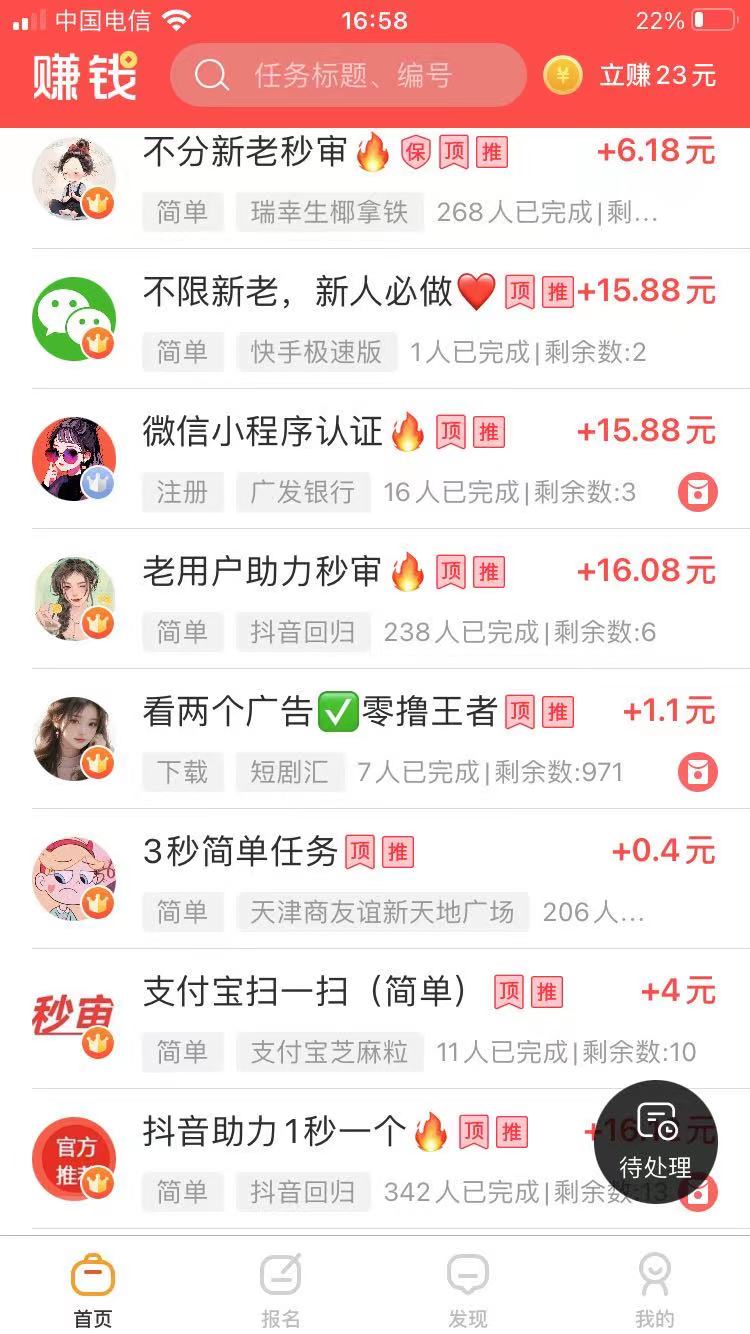 下载应用 赚钱了 分类: 综合项目 大小: 24.5MB 语言: 简体中文 发布: 2024-05-18 人气: 【应用介绍】: 相信玩过手赚的朋友都不会陌生这款赚钱软件。赚钱了APP是一款热门的手机悬赏任务赚钱软件,兼容安卓和ios平台。满2元起提现,支持微信和支付宝秒到账,非常稳定靠谱。 特点: 1、完成新人任务可获得额外现金奖励 2、满2元提现,支持微信和支付宝,无手续费、秒到账 3、邀请好友,奖励丰厚,非常适合推广 4、支持苹果和安卓系统,ios名字叫趣闲兼职 【猜你喜欢】: 快手极速版 番茄小说 赚钱了 鱼儿阅读 抖音极速版
